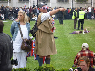 This clever little bugger was a a generic telescope type of thingy that allowed the vertically challenged to see over those people born with the tall gene, in hopes of spotting someone famous. I must tell you, without this cardboard box, I know I would have "accidentally" pushed someone aside or "accidentally" hit someone constantly in the head until they moved out of my way. It was not only my lifesaver, but someone else's as well. One thing that I must add about this contraption was this. Being that England was going to be infested with all sorts of tourists, including naive little Americans, there were those hustlers on the streets who thought that selling these things would be appropriate. Good thing I have no job, otherwise, my money would have bought 5 of those badboys.
